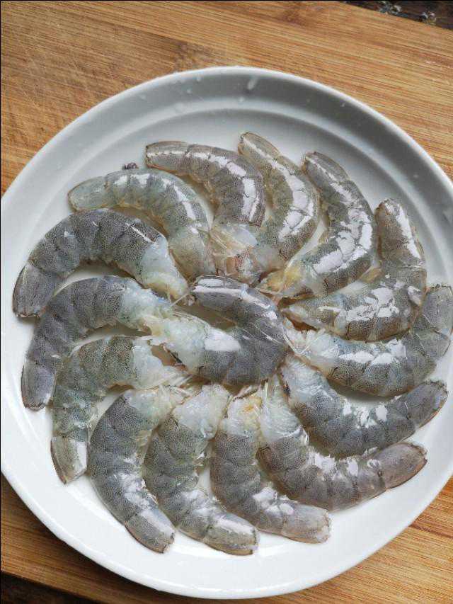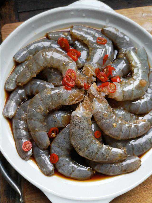 注意:用生尘椒与虾背剪开,都是为了更入味。