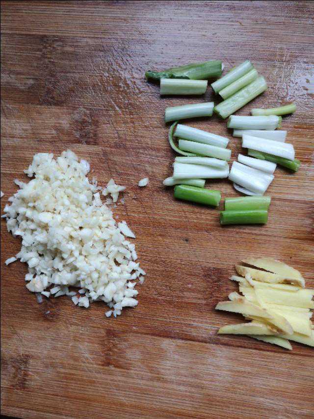 接下来准备好适量葱段,姜丝,蒜泥。