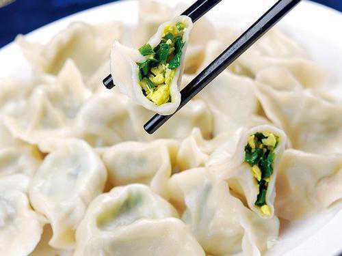 韭菜切碎,打两只鸡蛋加韭菜调成蛋液,起油锅炒熟,滗去水分备用(也可以单把鸡蛋炒碎炒熟,起锅放凉以后再与韭菜拌成馅儿)。擀几十只饺皮,把鸡蛋韭菜馅儿一包,或蒸或煮,起锅打个酸醋沾水,搁点蒜末蘸着吃,亦美。