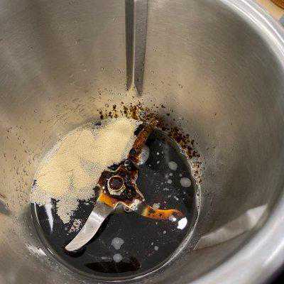 3、将水、红糖、酵母放入锅内,2分钟,37度,转速2,融化红糖同时激活酵母