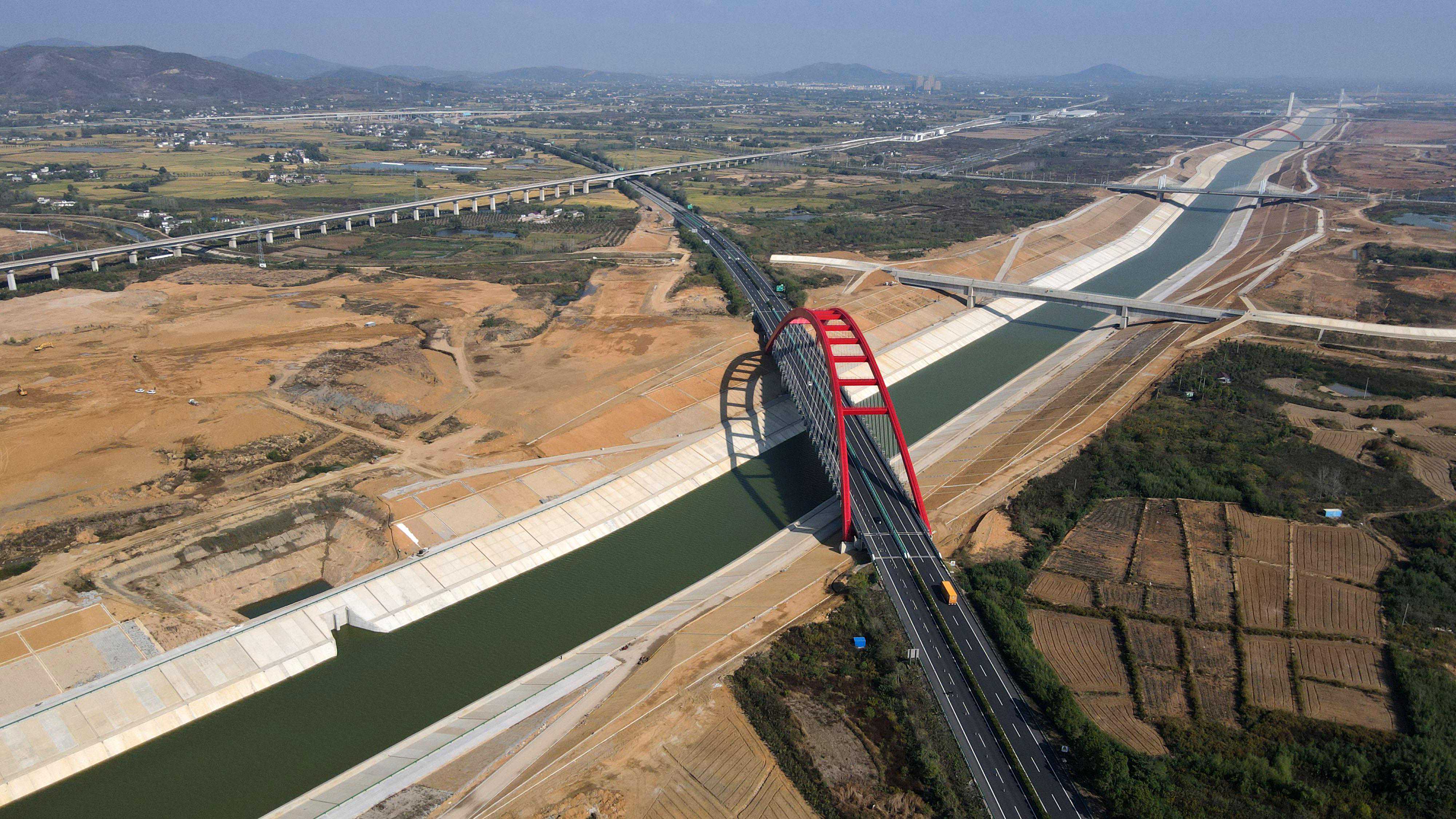 这是中铁十局三建公司承建的引江济淮工程(安徽段)菜巢线庐江段(10月13日,无人机照片)。新华社记者刘军喜摄