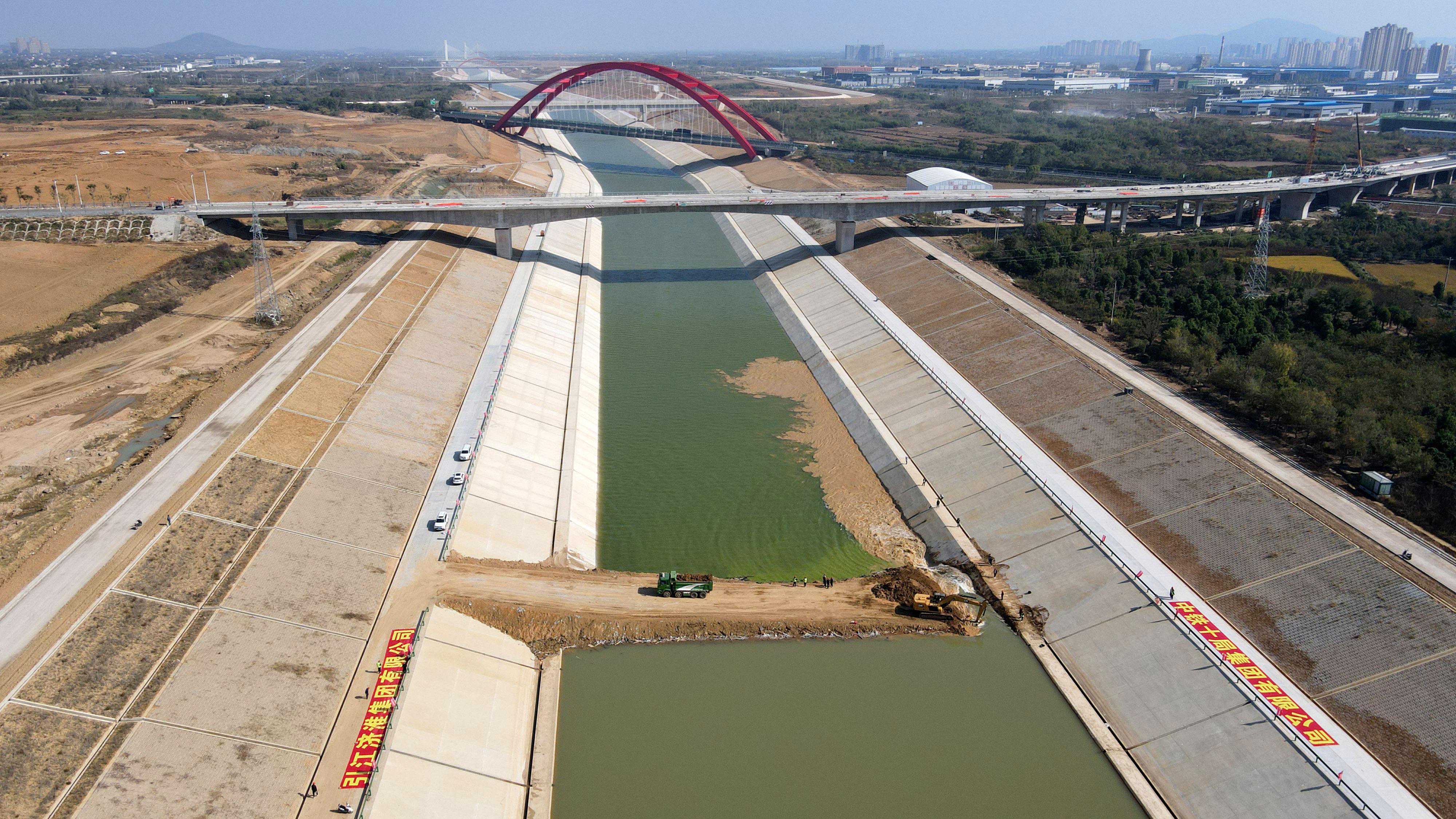 当日,随着施工机械将最后一道围堰拆除,由中铁十局三建公司承建的引江济淮工程(安徽段)菜巢线庐江段顺利通水,为引江济淮工程全线通水通航提供了保障。引江济淮工程沟通长江、淮河两大水系,以城乡供水和发展江淮航运为主要任务,兼顾农业灌溉补水和改善巢湖及淮河水生态环境、排涝等功能,是跨流域、跨省的重大战略性水资源配置和综合利用工程。