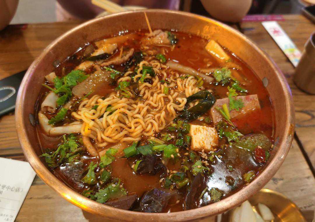 川东里火锅冒菜是近1年才开始扩张的店铺,在成都开了好多连锁店,主打冒菜和麻辣烫火锅进行融合,可以像麻辣烫一样自选食材,称重算钱,最终用大陶瓷碗端上桌,真的很像是一个人的火锅,强调鲜辣特色,十分霸道过瘾。