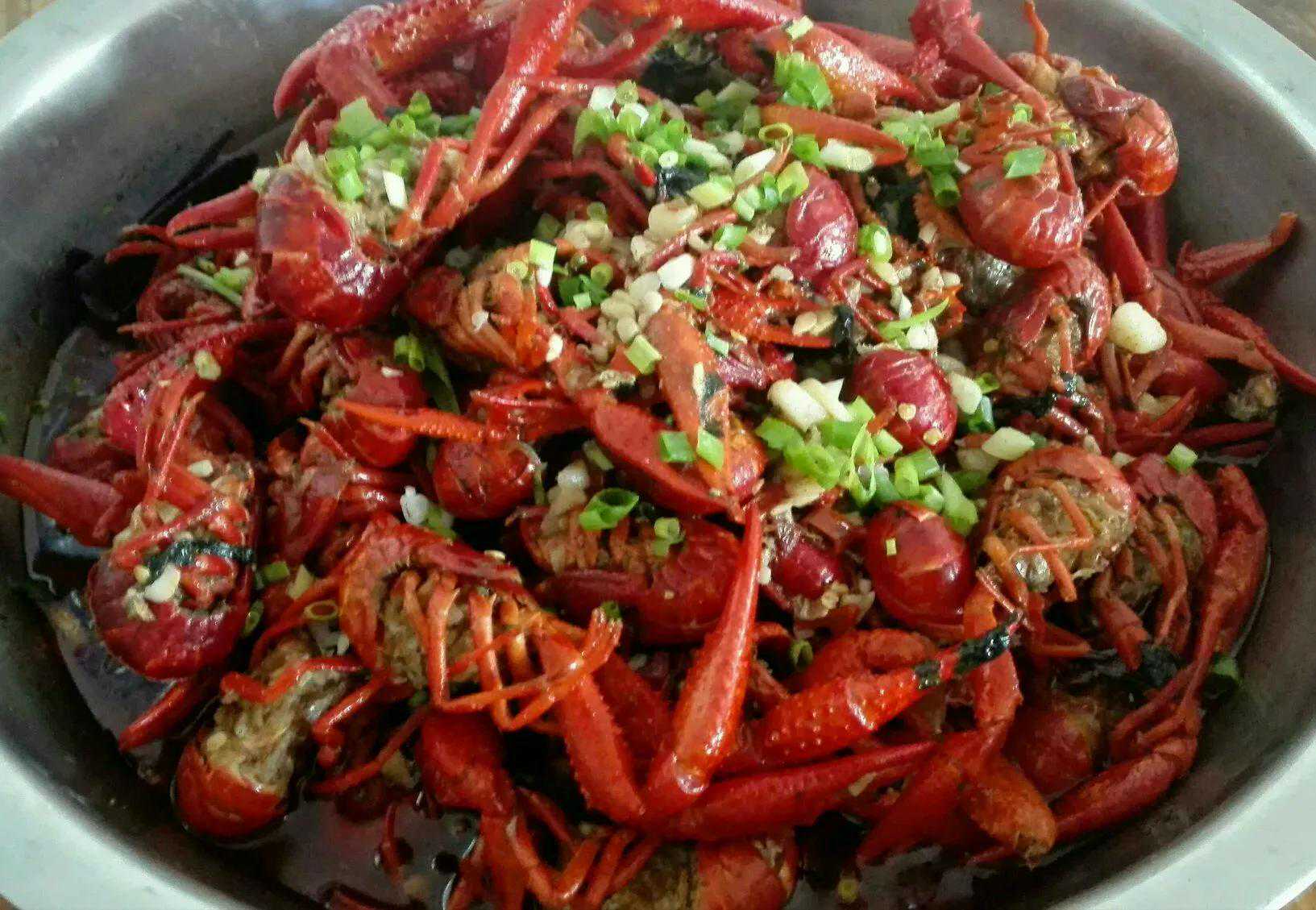 第三家就是我家做的小龙虾大餐。我这人很爱吃小龙虾,我同事也是,都说馋得不行,所以昨天轮到来我家做菜,我就准备了10斤小龙虾。小龙虾虽然好吃,但是清洗可费劲了,还好我同事都来帮忙一起处理小龙虾,这样我才觉得没那么费劲。如果光靠一个人清洗,我实在忙不过来。我们把小龙虾都处理干净后,我就做了2重口味的。以上这个就是蒜香小龙虾,吃着满嘴都是蒜香味,这味道也很不错,只见我同事抢着吃。