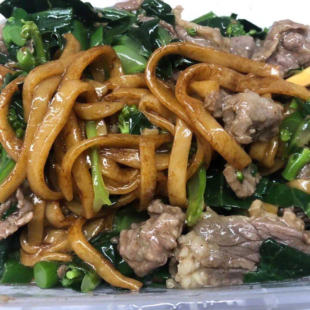 我知道光吃小龙虾过瘾是很过瘾,但是也只能当零食吃,当菜还是吃不饱的。或者我特意还做了炒牛河来填肚子。牛肉炒河粉,再加点芥兰一起炒,牛肉很嫩,荤素搭配,感觉味道也不错。
