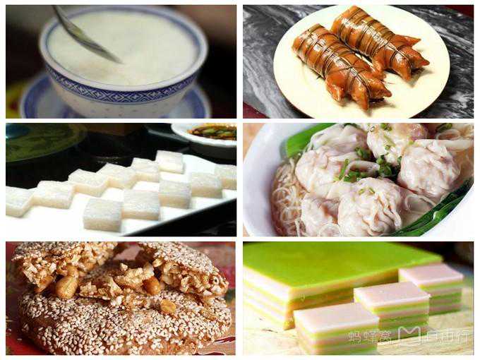 双皮奶、扎蹄、云吞面、伦教糕、九层糕、九江煎堆