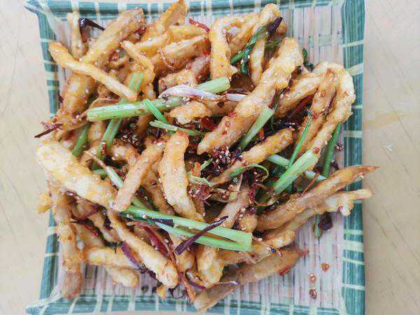 小贴士杏鲍菇不要炸老,佐料糖不要放太多容易糊锅。
