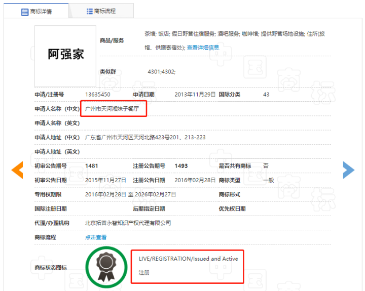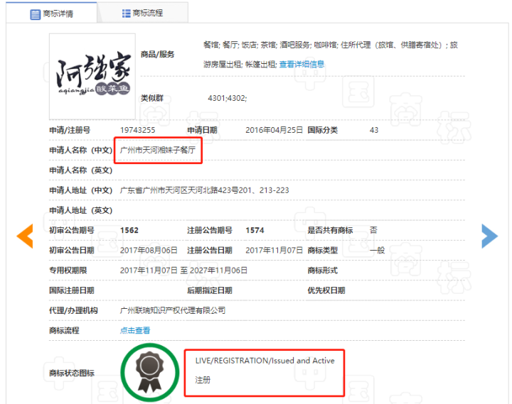 值得注意的是,就在2019年09月17日,“阿强酸菜鱼”商标被海南一家公司申请注册,但还未申请成功!