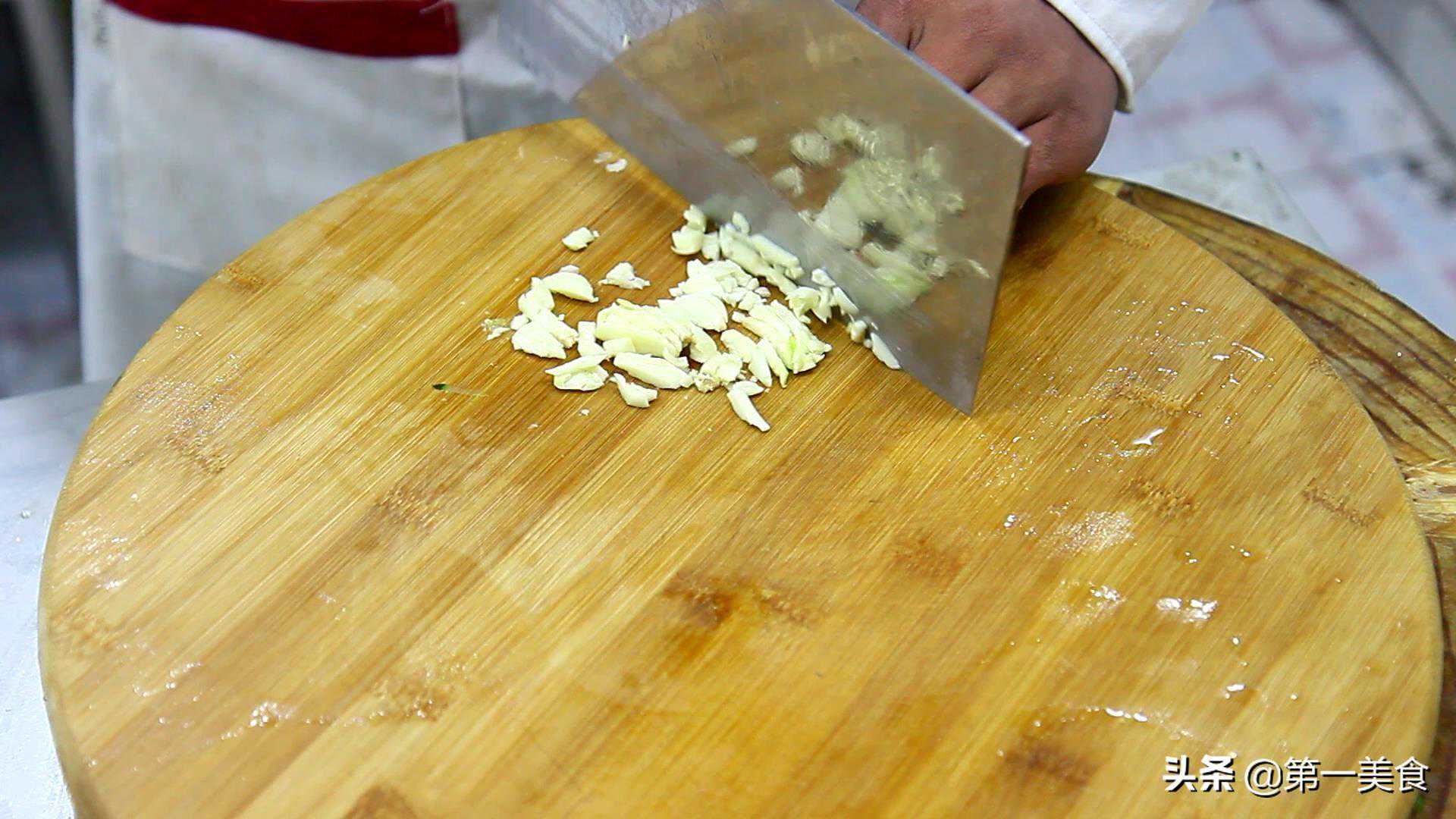 大蒜几粒,拍扁后切成碎末,放入小盆中。