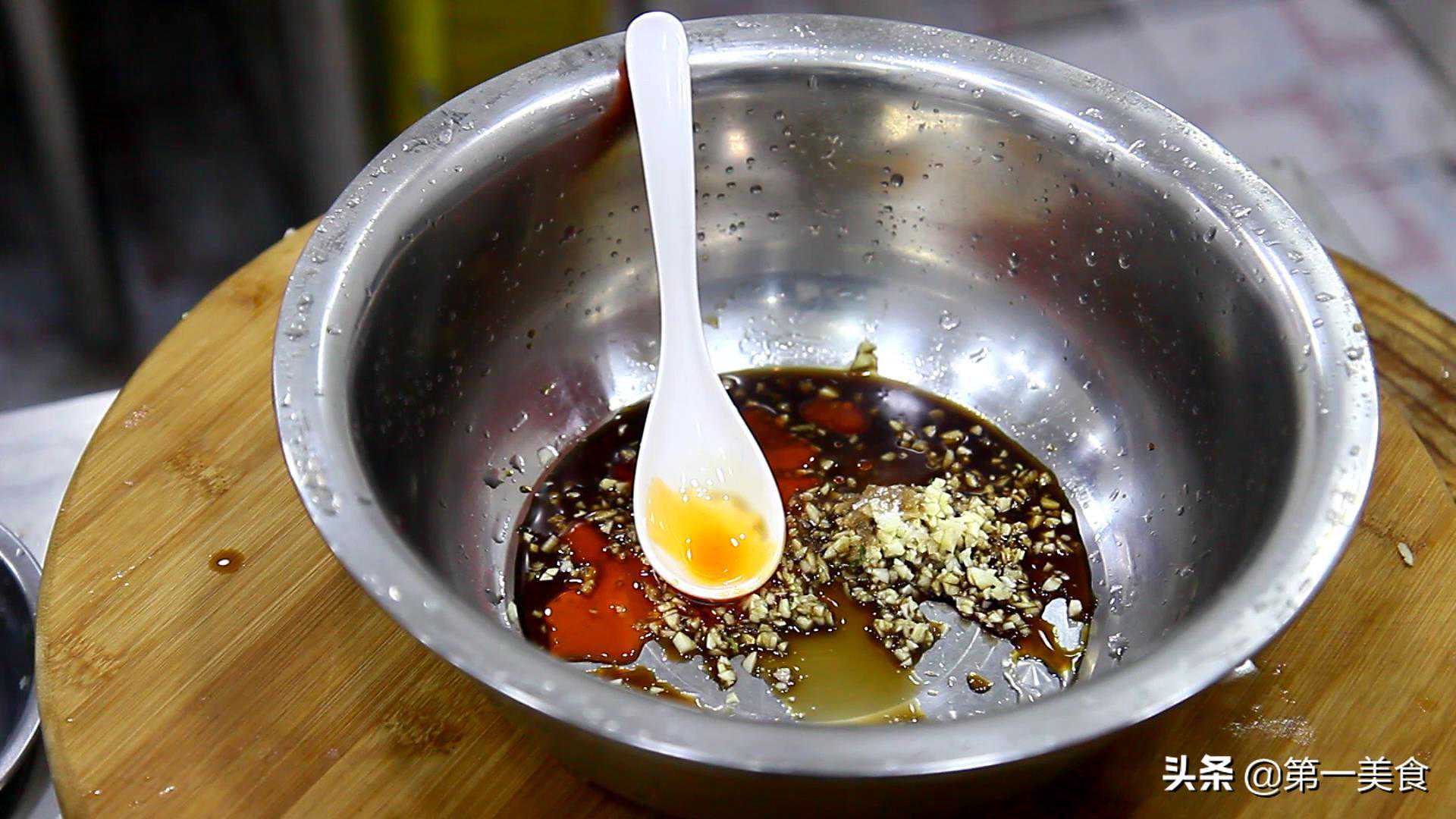 3.蒜末内加入食盐,味精,白糖,生抽,陈醋,辣椒红油,老干妈然后搅拌均匀,化开调料。