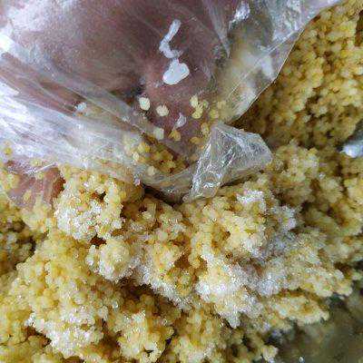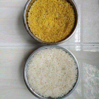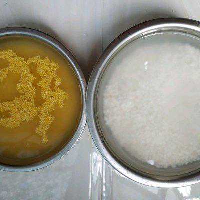 1、把糯米和黄米分别装进不同的容器,用清水浸泡一整夜