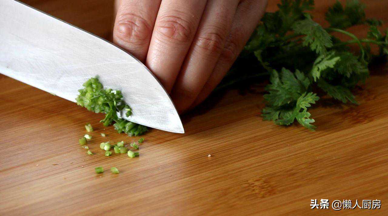 撒入一些切好的香菜碎,打入一颗鸡蛋,抹匀。