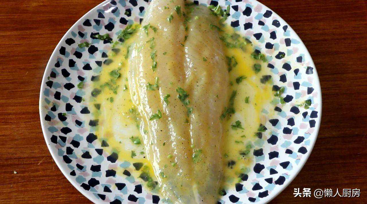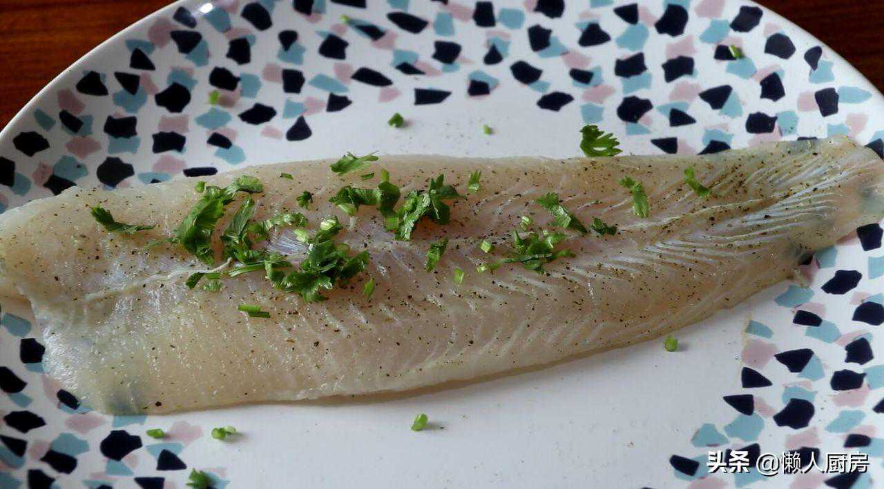 用水冲洗一下巴沙鱼,放入盘中,用厨房纸巾吸干表面的水分。