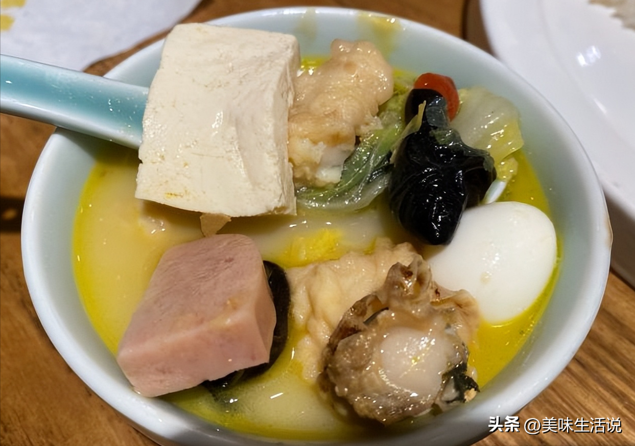 食材非常丰富的一道菜,味道好!汤汁浓郁,白菜鲜美软嫩,炸鱼肉,炸小肉,扇贝肉,火腿,炸虾仁,午餐肉、鹌鹑蛋等,一锅烩出来,又各自保留自己的味道,互不干扰,又相得益彰,好吃必须推荐!