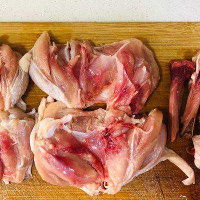 3、骨肉分离,不会太难,可以尝试一下。如果嫌麻烦可以直接用鸡胸肉。个人感觉鸡腿肉口感好一些,更嫩。