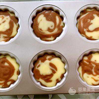 15、冷藏好的双色面糊装入学厨玛德琳模具里八分满,混合着颜色装烤出来更漂亮哦(我用的这个模具不沾,如果模具沾的话要提前刷油撒粉防沾)