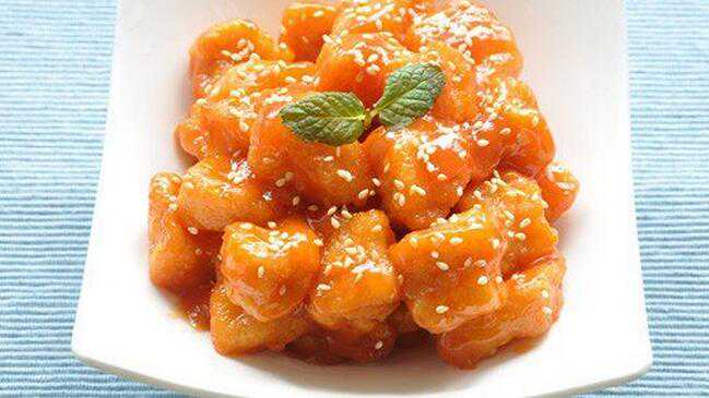 龙利鱼柳、番茄沙司、白糖、食盐、苹果醋、白胡椒、蛋清、玉米淀粉、白芝麻