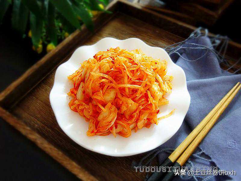 今天我这道小菜很简单,食材是白萝卜和白菜,调味品就是现成的袋装朝鲜咸菜拌酱。这种拌酱现在所有的大小超市都有售卖,非常容易买,其余的就是操作了。