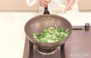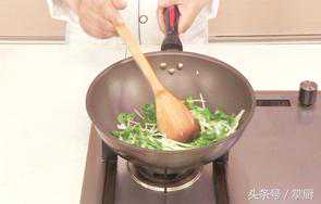 制作指导能掌握力度的话,可以通过颠锅进行翻炒,这样能更快地将鸡毛菜炒匀和炒透。
