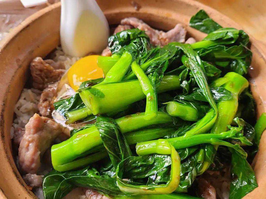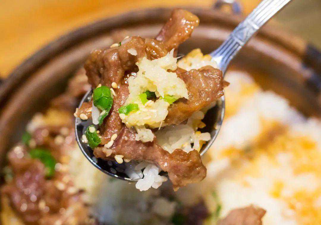 如果口味偏重,不妨试试牛肉。虽然并非肥牛,但牛肉中独特的香气亦是遇热在瓦煲内横冲直闯。此时冒着热气的饭焦一如蓄势待发的牛,裹起不容忽视的牛味,闯进你的胃里。