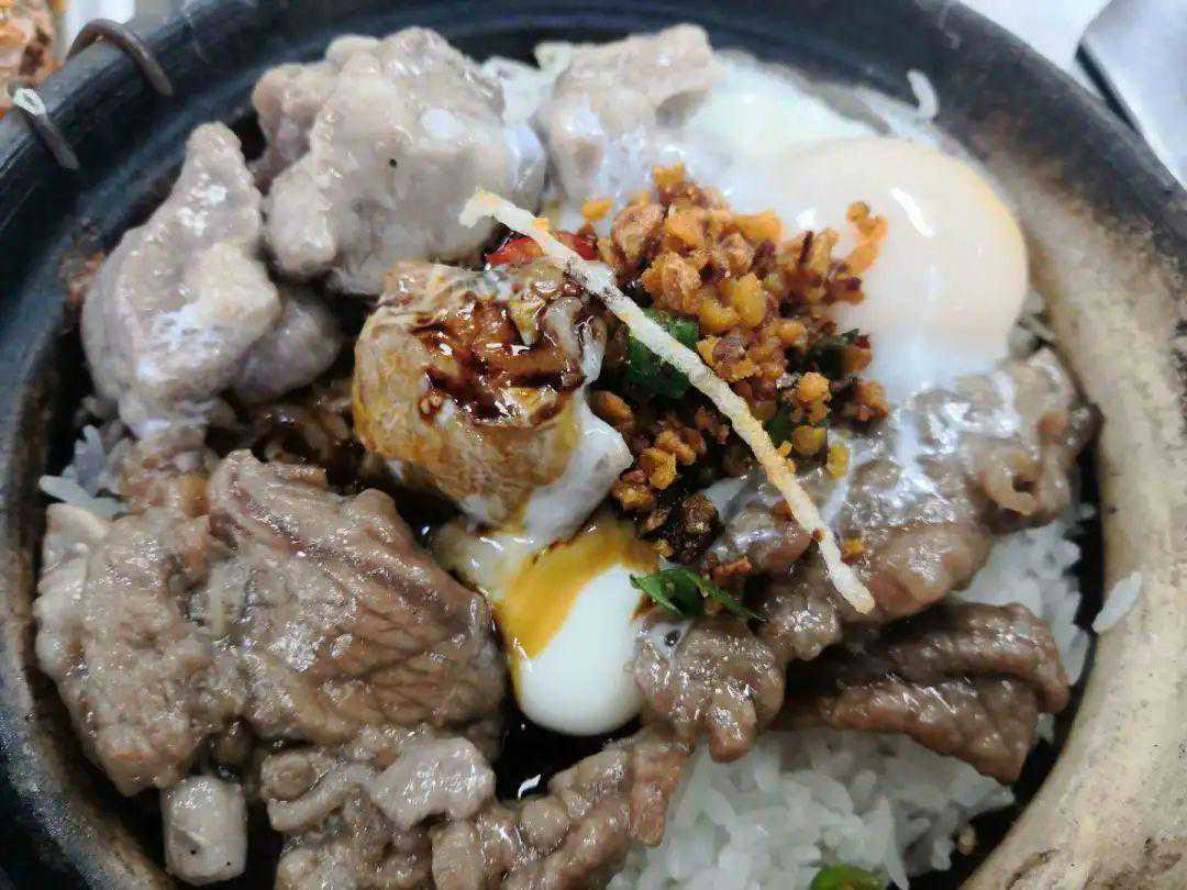 煲仔饭中的腊肠牛肉猪肝窝蛋,砂锅饭中也有,连煲仔饭中不常见的烤鸭丸子火腿肠也在砂锅饭中有一席之地。