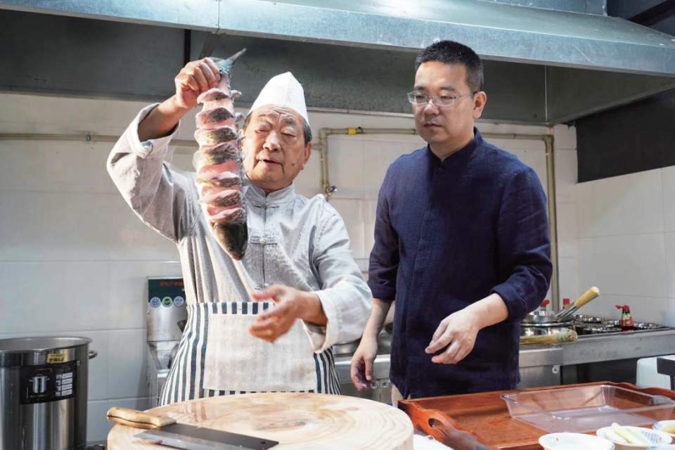 李盛开的脆皮鱼也有自己的故事可讲。据他介绍,其技艺传承于烹饪大师王志忠。