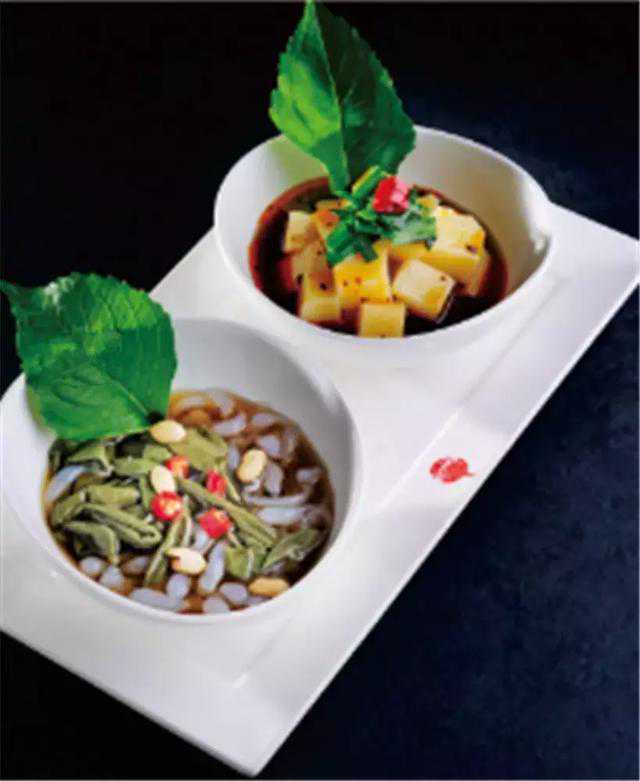 我们在传统做法的基础上,加入了豆豉、芝麻酱和花椒油,让传统的凉粉汁口味更丰富。