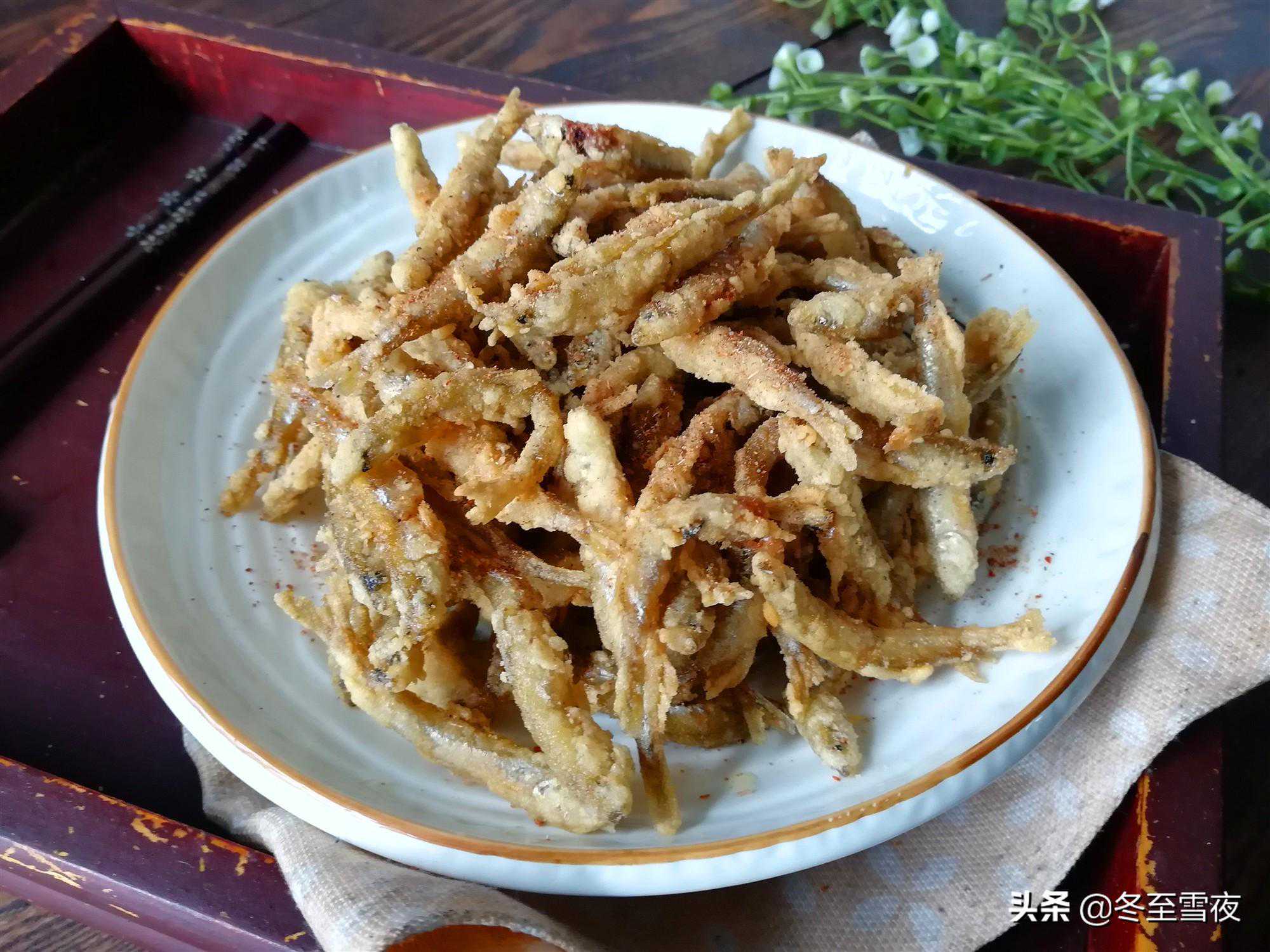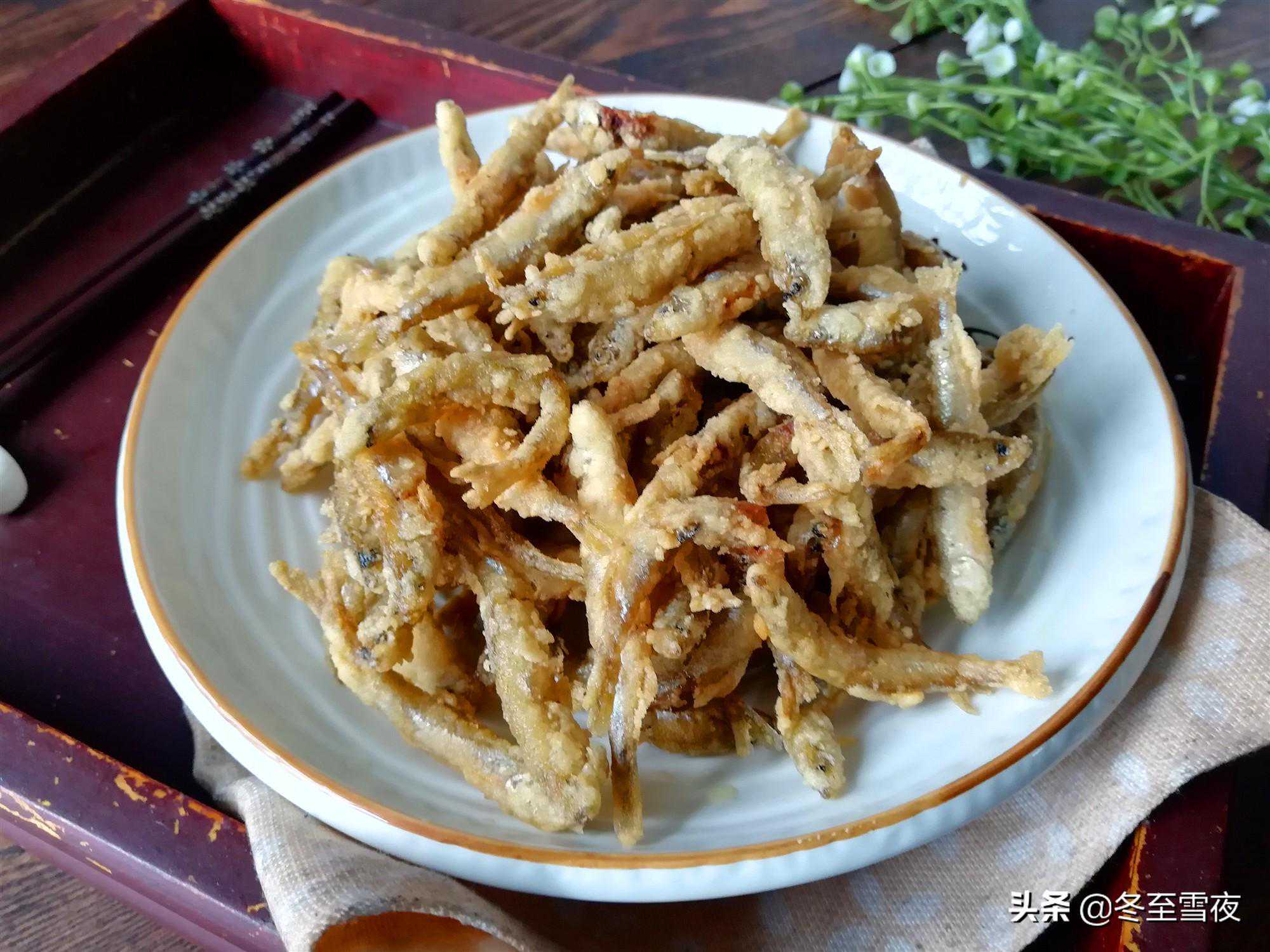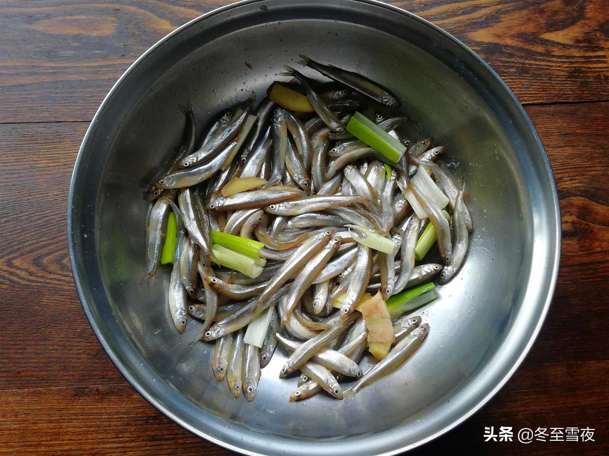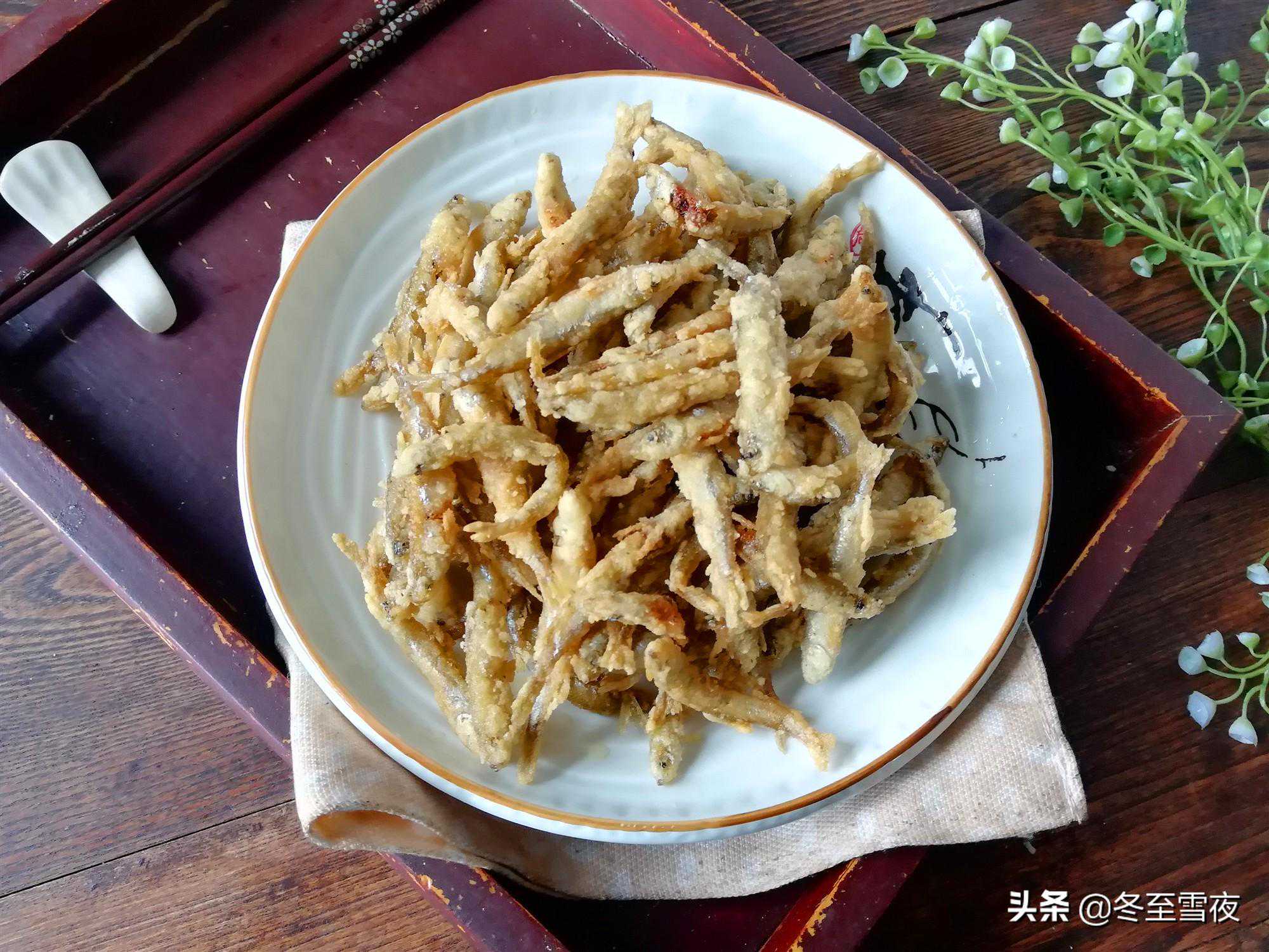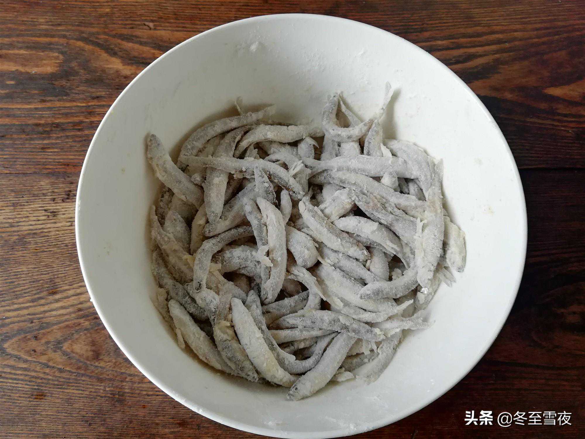 锅加油烧5-6成热,如果掌握不好油温,下下入到油锅里一条,下入后鱼的周围马上起密集的小泡,油温就可以了,将鱼抖散下入油锅炸制,不要一股脑的全下入油锅里炸,抖散下入就是像大学食堂的阿姨打饭一样,手老抖,这样把鱼都散开下入到油锅里炸,每条鱼都会均匀的受热,不会粘成一团,这也是炸鱼的小窍门,将鱼放入后不要太快动它,炸一会后再将鱼再油锅里拨散开,将鱼炸制定型,捞出