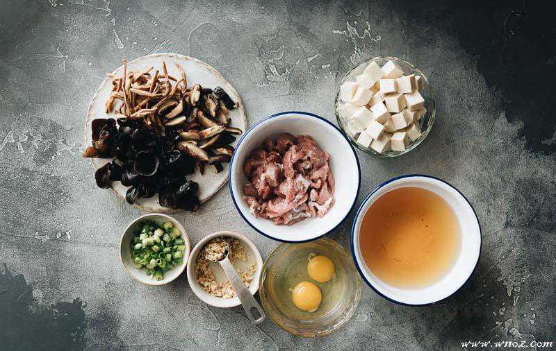 食材:豆腐猪肉鸡蛋百合木耳香菇