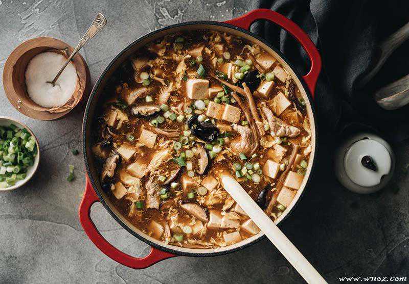 中国的酸辣汤做法有好多种,用菜也各不相同,比如有鱿鱼酸辣汤、肉皮酸辣汤、还有比如酸菜鱼等都是属于酸辣汤,之前看了小糯的笋的做法也是做成酸汤,味道绝对美,今天小娇给大家介绍的正宗开胃酸辣汤有点不一样,主要是由肉片、蘑菇、鸡蛋和豆腐组的酸辣汤,制作方便简单,但是味道可十足的好。汤的酸味来自镇江香醋,辛辣来自白胡椒粉,不需要辣椒或辣椒油!