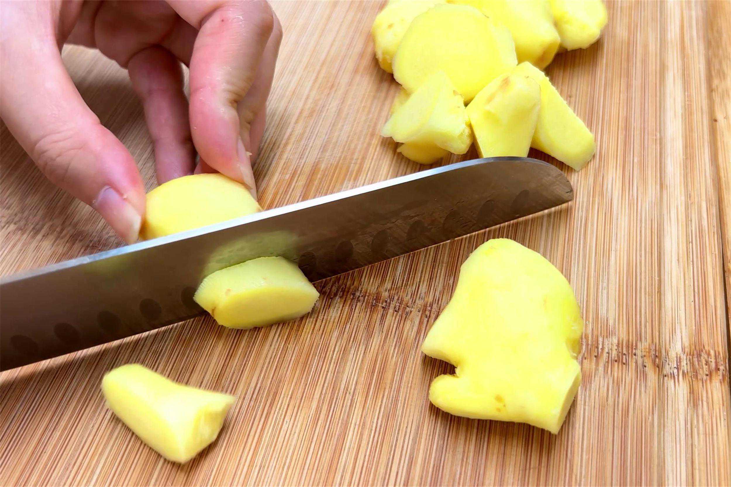 1、生姜洗净削去外皮,切大块放入料理机中搅打成姜末。