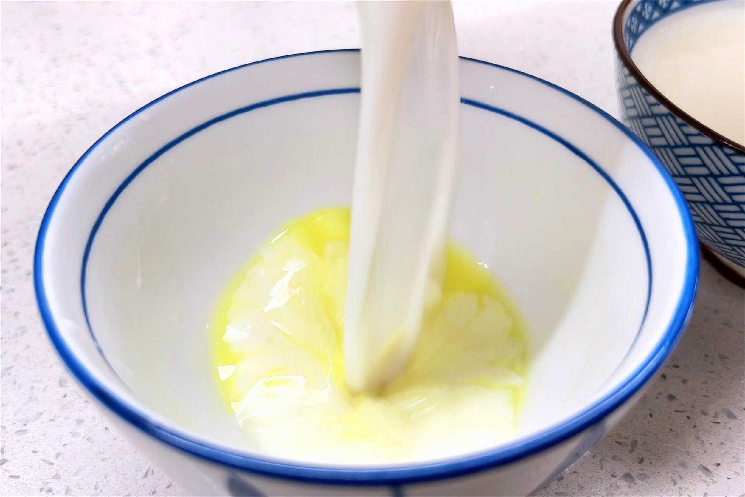 4、把煮好的牛奶冲入加了姜汁的小碗中,静置5-10分钟凝结后就可以食用了。