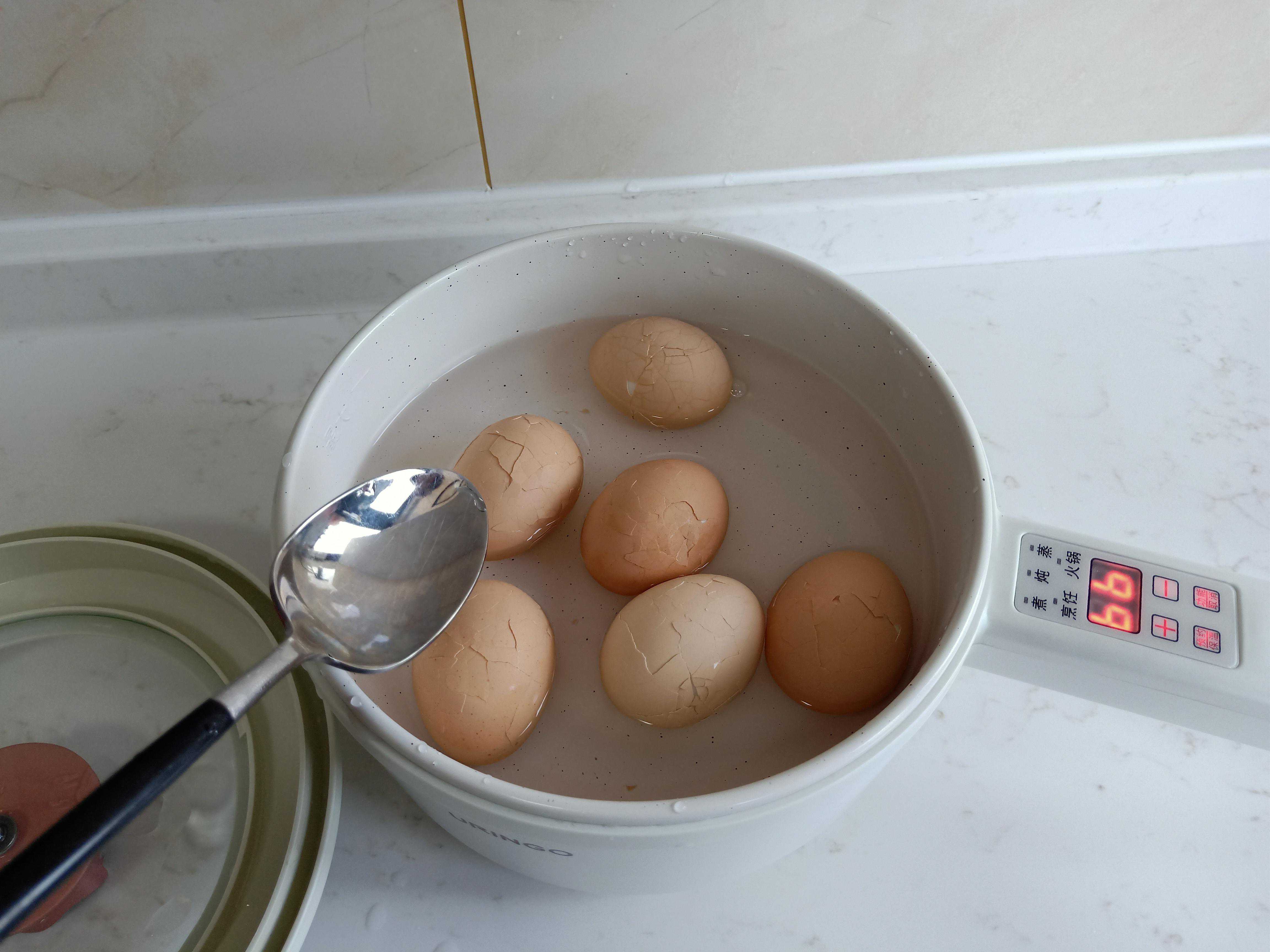 这么少的鸡蛋,用一个小电锅就可以了。因为可以定时,煮的时候不用人管,所以我是中午回家煮的,正好可以让我安心午睡。