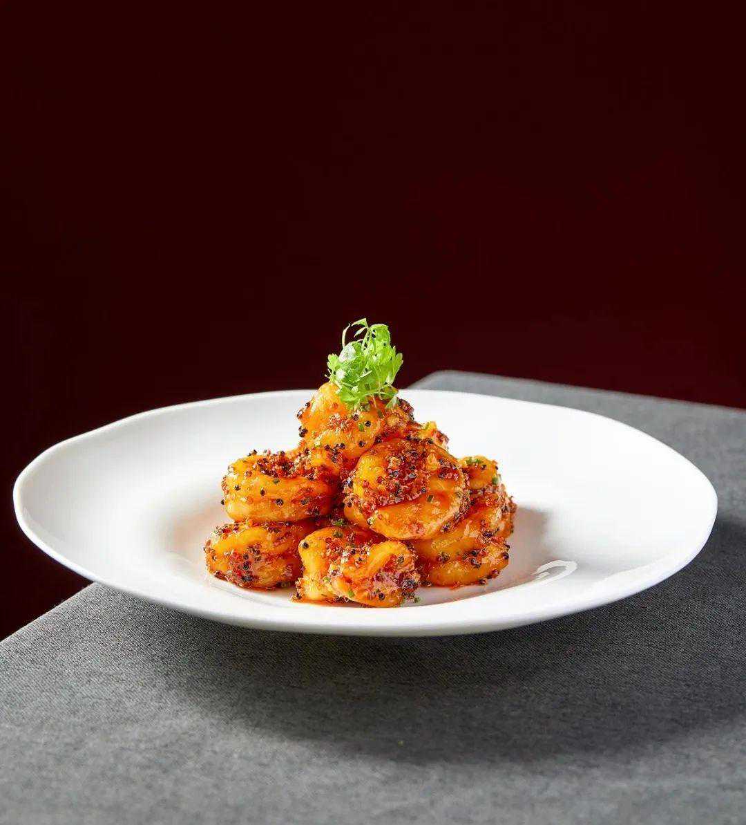 选用10头黑虎虾仁搭配法国小香葱粒,酥炸藜麦使其口感酸甜微辣,层次丰富。