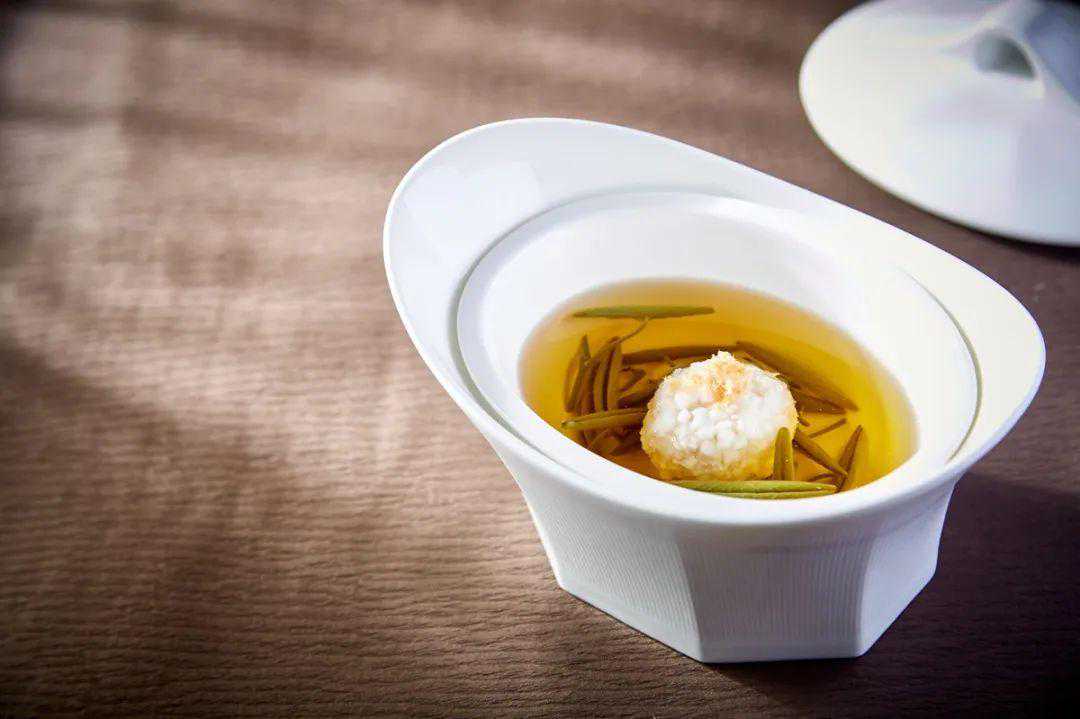 粉红石首仍无骨,雪白河豚不药人。主料选用优质雪花猪肉切成石榴米丁做成的狮子头,成菜色汁洁白,肥而不腻,鲜嫩可口,搭配6小时老母鸡汤为底料,最后配上时令莼菜慢火清炖使其口味更加丰富。