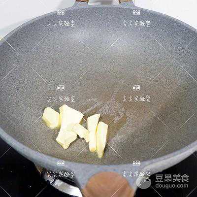 7、将黄油放入不粘锅,先将黄油加热至融化