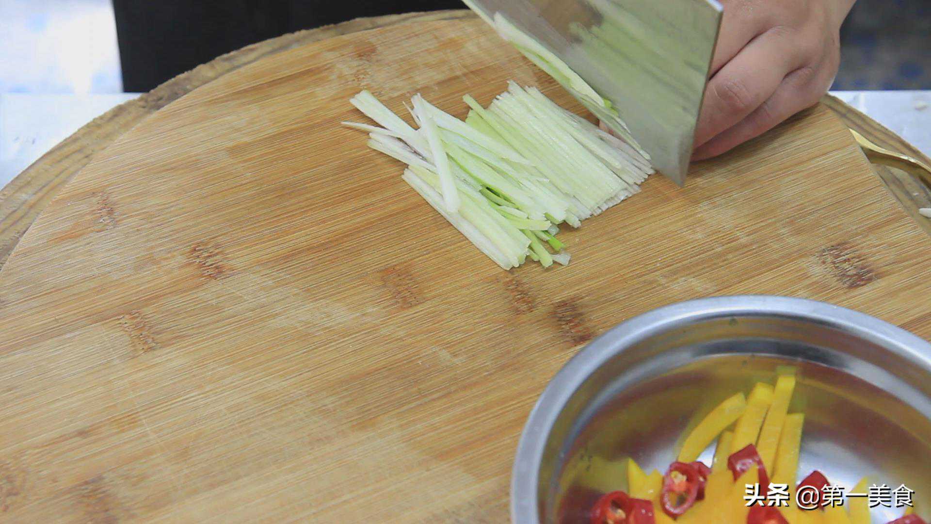 大葱白一小段,破开切成葱丝。