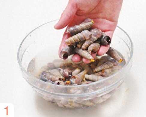 1丁螺洗净泥沙,沥干水。