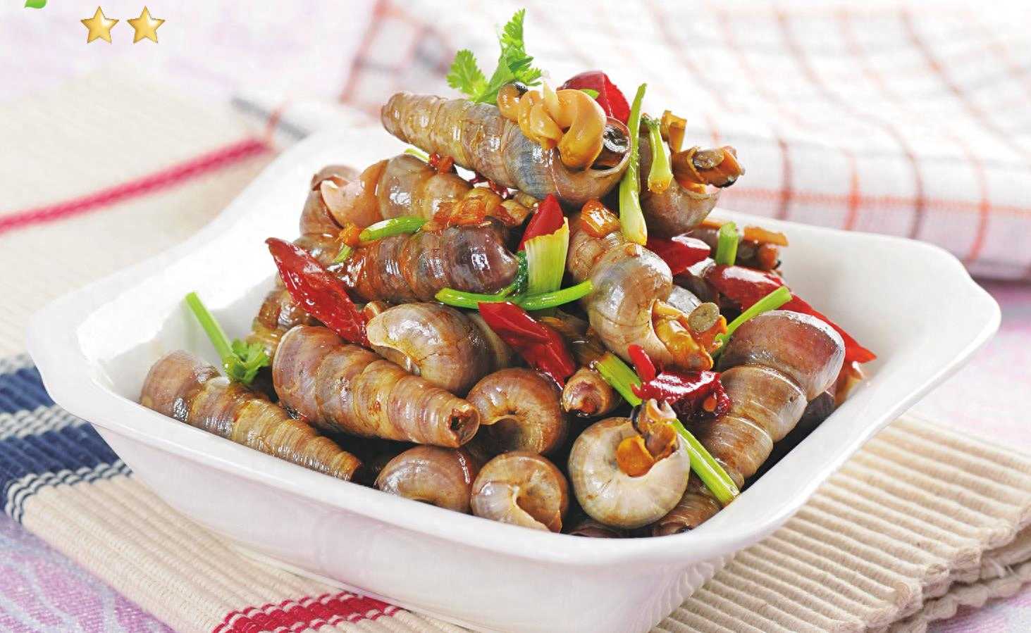 螺肉丰腴细腻,味道鲜美,素有“盘中明珠”的美誉;它富含蛋白蛋、维生素和人体必需的氨基酸和微量元素,是典型的高蛋白、低脂肪、高钙质的天然动物性保健食品。还具有清热,解暑,利尿,止渴,醒酒的功效。选自《Hello,怡情小炒》一书,版权所有。
