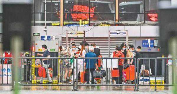 6月19日,菜园坝火车站(重庆站),旅客们提着大包小包陆续进站。