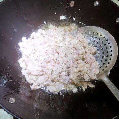 6、加入宽油,适量多一些,有助于快速滑散兔肉