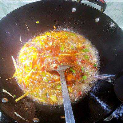 9、依次下入大蒜,花椒,泡椒泡姜,郫县豆瓣炒香
