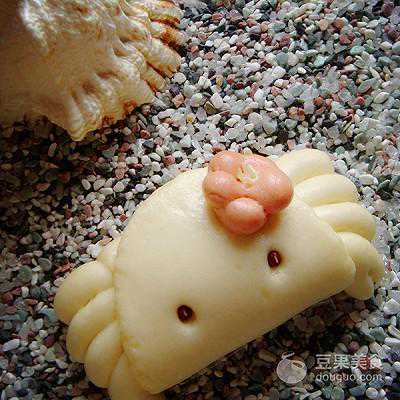 9、用两颗红豆做出小螃蟹的眼睛。一只活灵活现的小螃蟹就做好了。