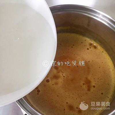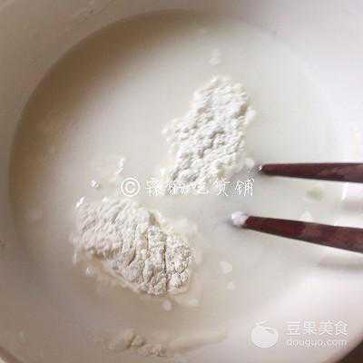 小贴士糯米粉一定要搅拌至没有颗粒才能入锅,否则进到锅里就会变成疙瘩的。一定要搅拌,不然就会糊锅。
