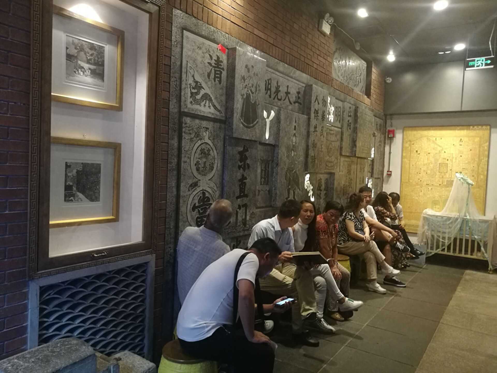 这是等位儿的地方,墙上有很多老北京特色的照片或者石碑。