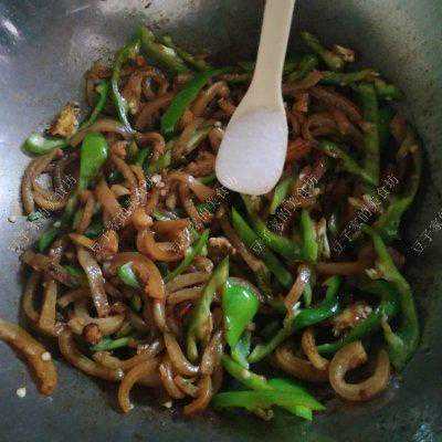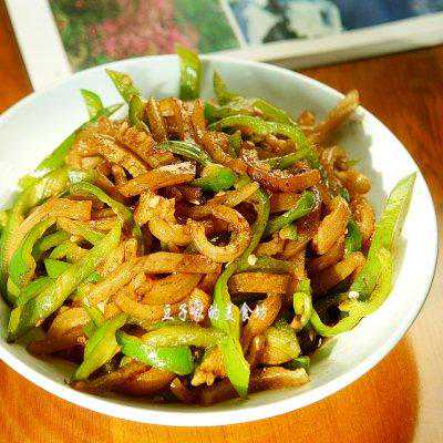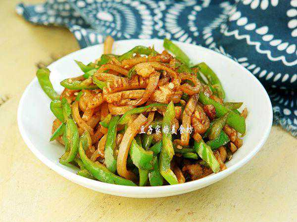 猪皮炒辣椒。它是下酒的好菜。营养和口感都是顶级的,猪皮含有胶质美容养颜抗衰老。不管男女都会衰老的,经常吃点猪皮还是有益处的。食物是最好的营养了。每次买肉都选择买带皮的肉,二三次就积攒下来很多了。可以煮皮冻或者炒菜。