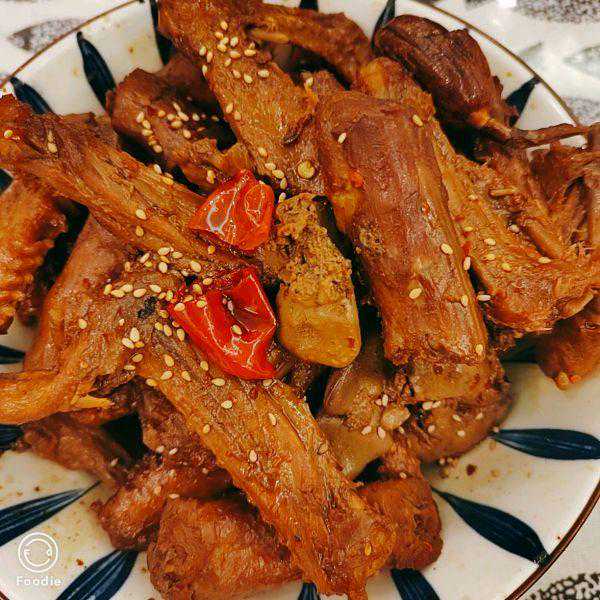 1、鸭货焯水,焯水时候放点料酒,葱姜。凉水下锅,水开焯15分钟。撇去浮沫,捞出。