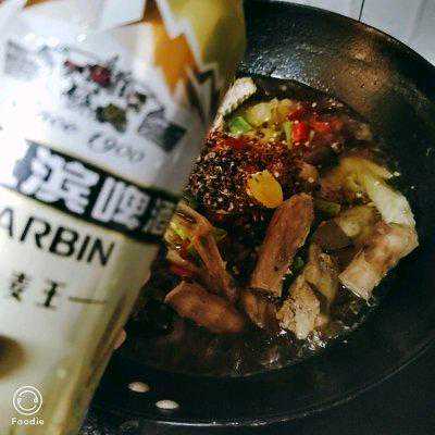 2、有什么就放,必须的有甜面酱,啤酒,生抽老抽,冰糖,辣椒,麻椒,八角,桂皮,香叶。像白芷,草果,茴香十三香有也放。