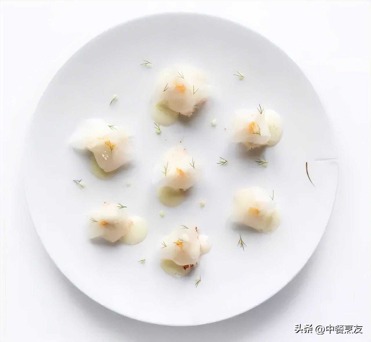 阿拉斯加蟹肉配酸甜白萝卜、橄榄油及莳萝草