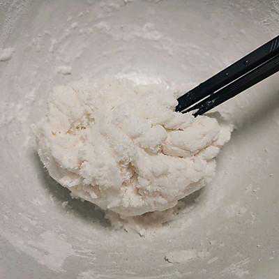 4、水烧开,倒入盛有糯米粉的碗中,搅拌成团